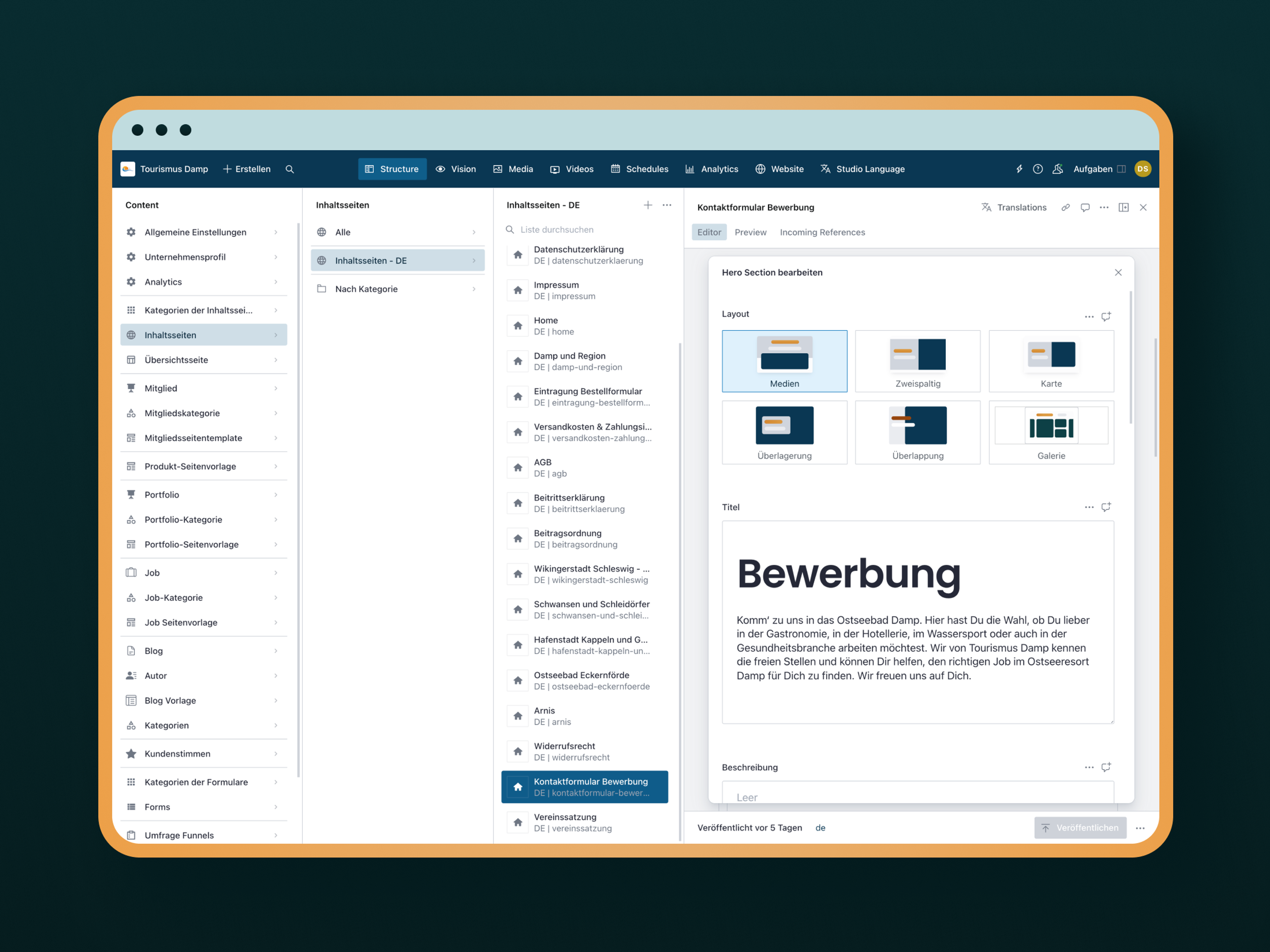 Etter relanseringen presenterer Tourismus Damp seg med et brukervennlig nettsted som setter regionens ferietilbud i sentrum. Takket være et intuitivt innholdsstyringssystem kan innhold om overnatting, arrangementer og suvenirer oppdateres på en fleksibel måte. Den nye nettsiden skaper en ideell plattform for å overbevise potensielle gjester om allsidigheten til feriestedet ved Østersjøen.